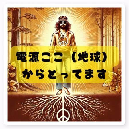 ヒッピー男「電源ここ(地球) からとってます」ステッカー