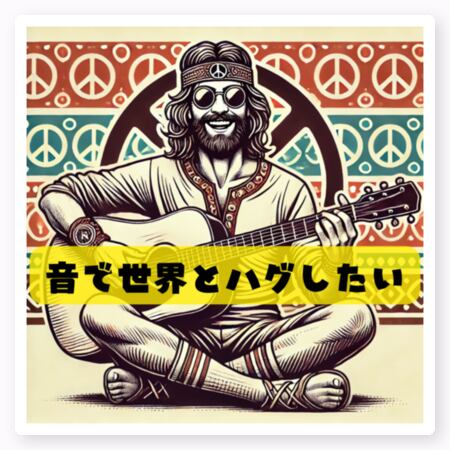 ヒッピー男「音で世界とハグしたい」ステッカー